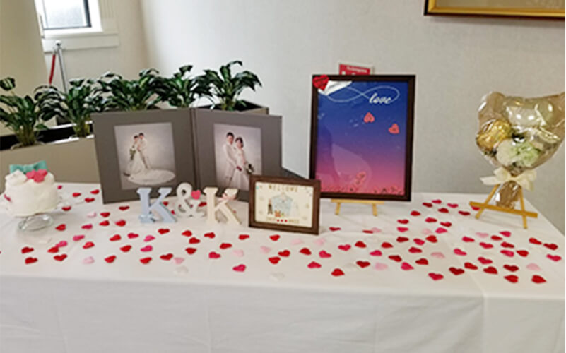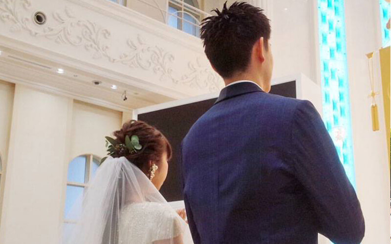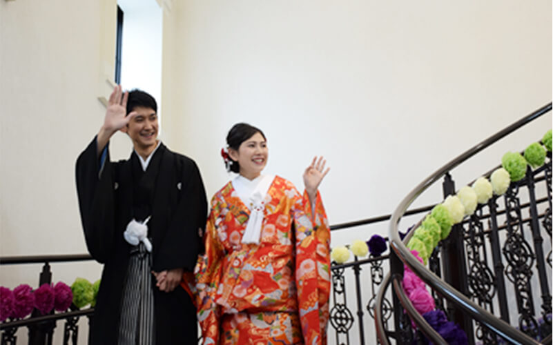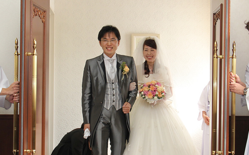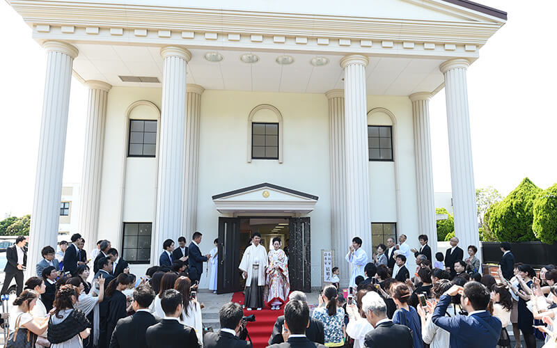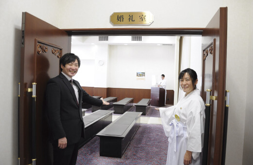 婚礼室で新郎新婦をお迎えします